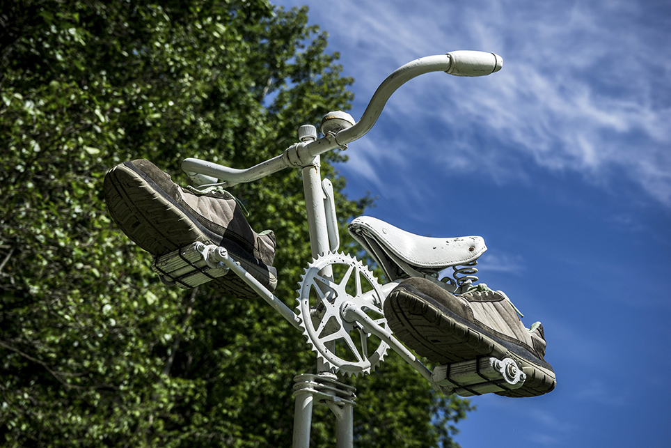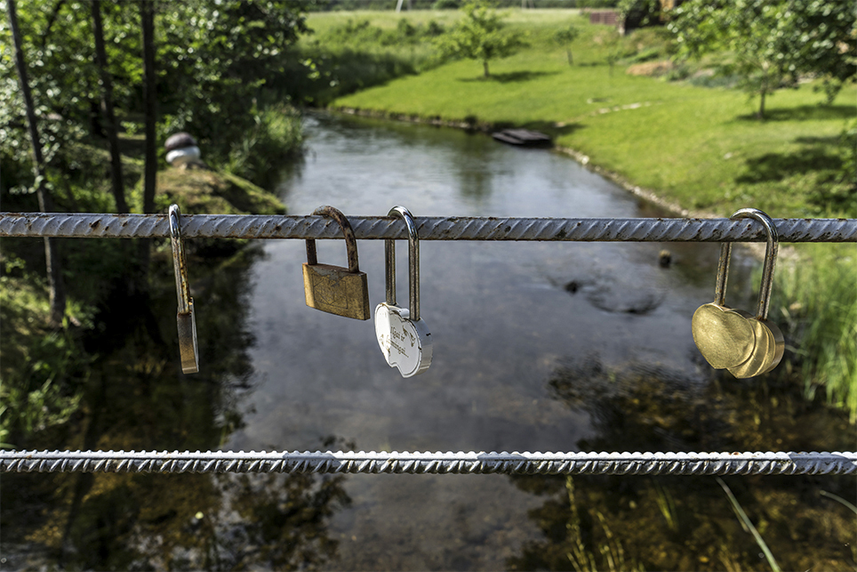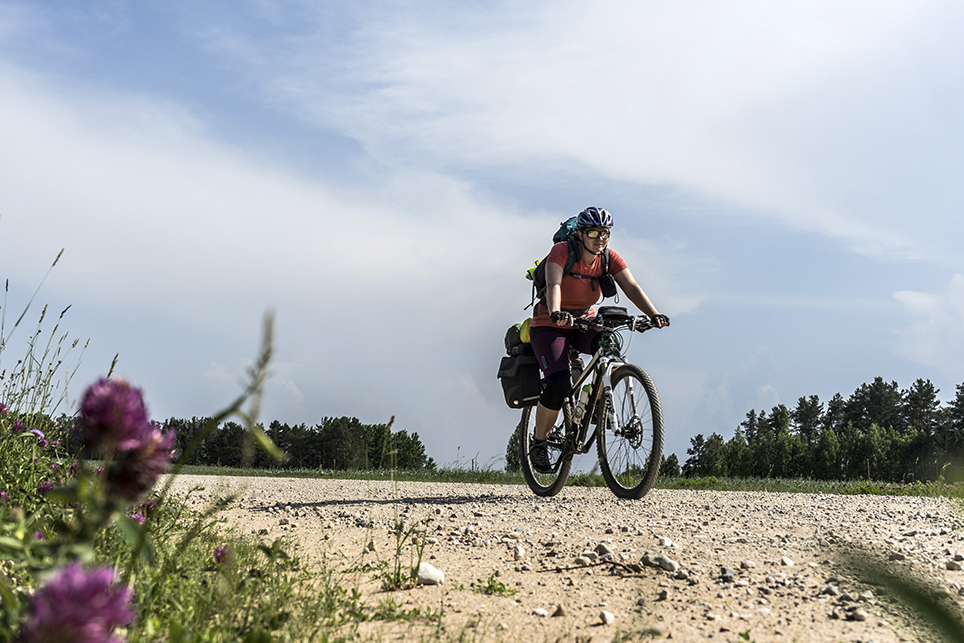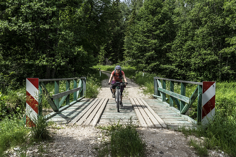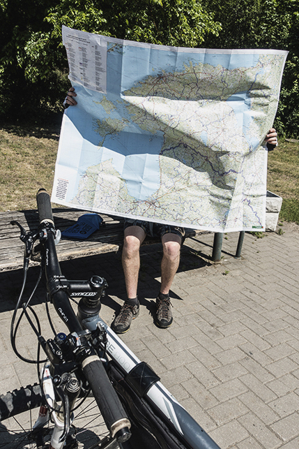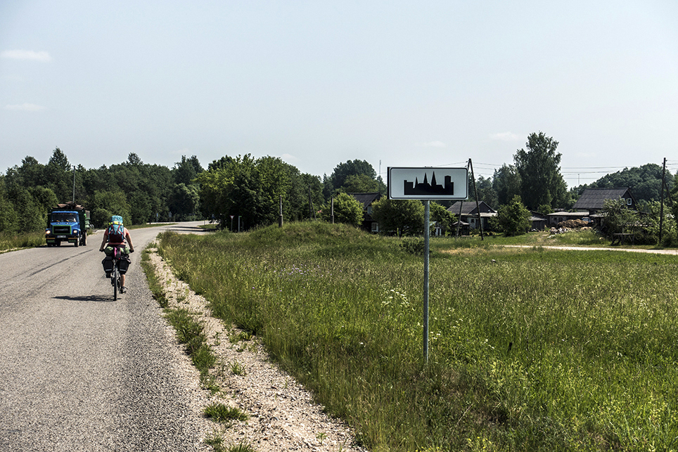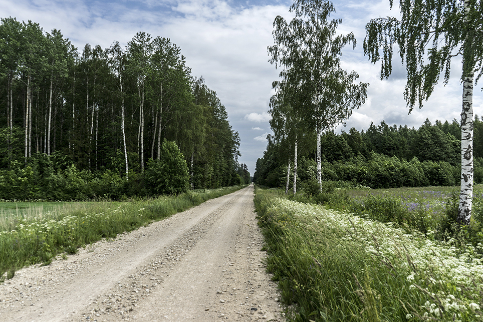 Bereits am dritten Tag betreten wir an einem winzigen Grenzübergang erstmals lettischen Boden. War es bisher schon sonnig und warm, knacken wir inzwischen deutlich die 30 Grad-Marke und nur mehr selten sorgen schattige Wälder für eine Erholung zwischen dem der Sonne schutzlos ausgelieferten Weideland. Auch Asphalt findet sich nur noch auf den größten Hauptstraßen, was eigentlich kein Drama ist, da wir mit robusten Mountainbikes unterwegs sind. Allerdings ist der Belag meist so schlecht, dass wir uns entweder durch losen Sand kämpfen müssen oder auf regelrechtem Wellblech nach allen Regeln der Kunst durchgeschüttelt werden.