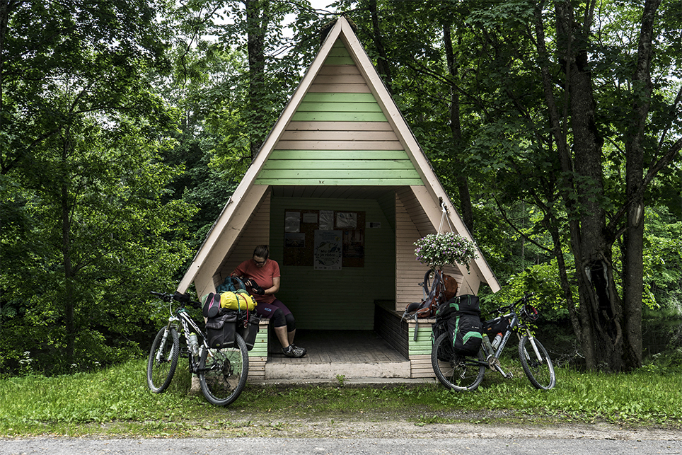 Dafür entdecken wir hier unser Faible für die Überbleibseln der Sowjetzeit. Nein, damit meinen wir nicht die alten Plattenbauten, die teilweise sogar ganz unvermittelt in den kleinsten Dörfern auftauchen und auch nicht die großen Industrieruinen aus der Zeit der Planwirtschaft, sondern Karums und Kwas (russ. KBAC), kleine gekühlte Quarkriegel und ein erfrischendes Getränk aus gegärtem Brot, mit denen wir uns täglich in den kleinen Tante-Emma-Läden eindecken, um unseren Kalorienhaushalt etwas aufzupäppeln. Nur einmal unterbricht ein heftiges Gewitter das ansonsten ungetrübt gute Wetter. Doch zum Glück zelten wir genau an diesem Abend auf der großen Wiese eines Fischers am Lubān-See und so können wir das mitternächtliche Spektakel entspannt von einer großen, überdachten Terrasse aus beobachten.