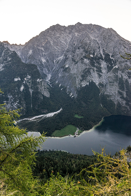 Wie ein Fjord schneidet sich der Königssee tief in die Berchtesgadener Alpen. Steile Wände, hochalpines Gelände – und drei Tage, die jede Mühe wert sind. Früh am Morgen ist es an der Seelände noch ruhig, das zweite Boot nach St. Bartholomä kaum gefüllt. Über dem See liegt eine graue Nebeldecke. Kurz vor St. Bartholomä öffnet sich der Himmel und gibt den Blick auf die Watzmann-Ostwand frei. Während die meisten Mitreisenden beim Kloster einkehren oder weiter nach Salet fahren, biegen wir auf den stillen Uferpfad ab und steigen bald steil ins Schrainbachtal hinauf.