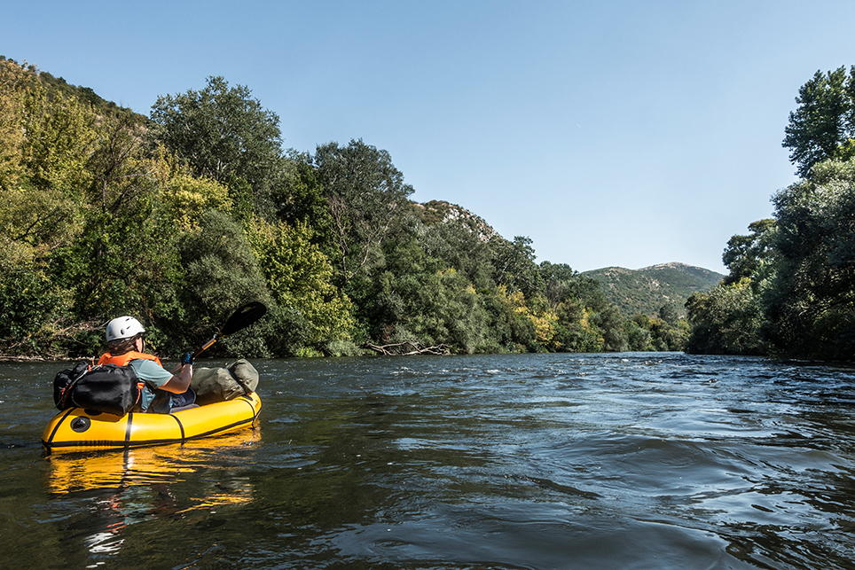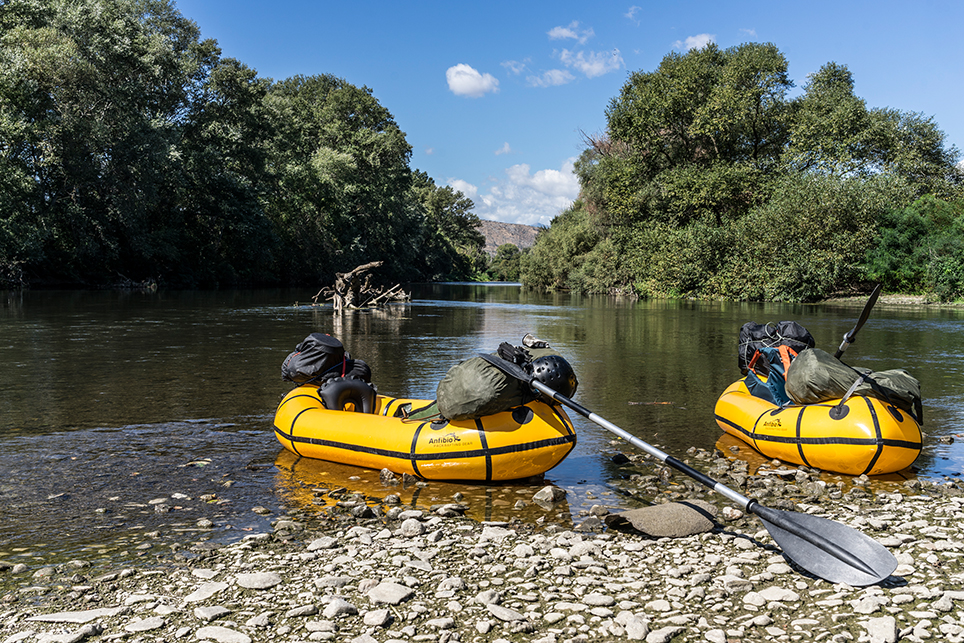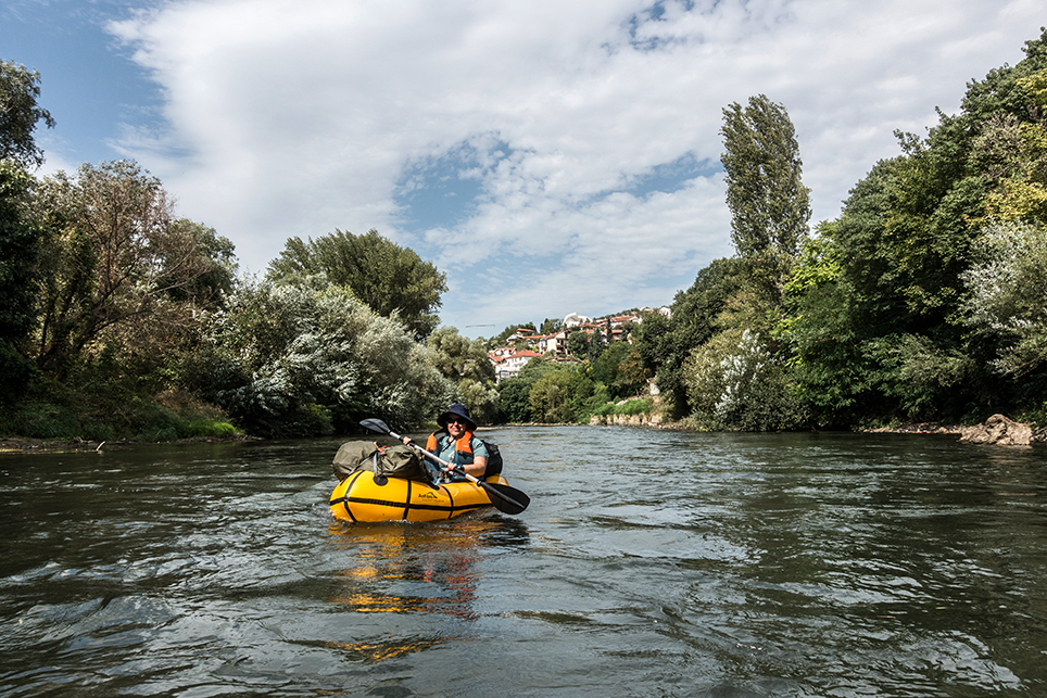 Der Vardar ist der größte Fluss Nordmazedoniens. Er entspringt in den Bergen der Šar Planina auf etwa 700 Metern Höhe, durchzieht das Land in einem weiten Bogen von West nach Südost, bevor er bei Idomeni die Grenze zu Griechenland überquert und schließlich als Axios nahe Thessaloniki in die Ägäis mündet. Schon in dem populären Lied Jugoslavijo, der inoffiziellen jugoslawischen Nationalhymne, findet er Erwähnung – „Vom Fluss Vardar bis zum Berg Triglav...“ heißt es darin – ein Hinweis darauf, welch bedeutende Lebensader er seit jeher darstellt. Schon lange trug ich die Idee mit mir herum, mit den Packrafts eine Tour auf dem Balkan zu wagen und schließlich entdeckte ich während der Recherche den Fluss Vardar. Der Vardar schien ein guter Kompromiss zu sein – landschaftlich reizvoll, weitgehend unverbaut, mit kleinen Wildwasserstellen, aber auch für Wanderpackrafts noch gut zu meistern.