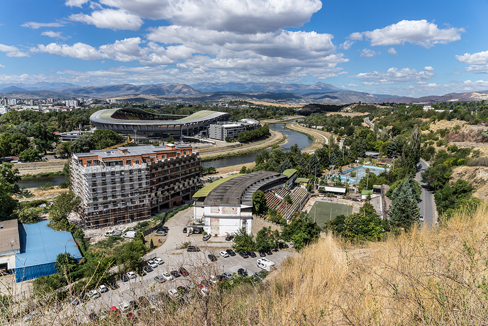 An einem sonnigen Morgen Ende August steigen wir in Salzburg in den Reisebus nach Skopje. Anfangs sind wir kaum mehr als eine Handvoll Reisende, und obwohl im Verlauf der Fahrt durch Österreich und Ungarn noch einige Menschen und auch das eine oder andere Paket zusteigen, bleibt der Bus angenehm leer. Ein junger Mazedonier, freundlich und voller Stolz auf sein Land, setzt sich bei jeder Pause zu uns: Noch immer sind Touristen hier etwas Besonderes, Nordmazedonien zählt neben Moldau und Lettland zu den am seltensten bereisten Ländern Europas. Und tatsächlich sind wir die einzigen Nicht-Osteuropäer im Bus – ein Bild, das ich aus Bulgarien, der Ukraine und Serbien bereits kenne – als Deutscher fliegt man halt doch recht gerne. Dabei hat so eine Busfahrt durchaus ihren eigenen Reiz: Man nähert sich dem Land langsam, Stunde um Stunde, die Landschaft verändert sich Schritt für Schritt und nicht so abrupt wie beim Fliegen. Im Licht der aufgehenden Sonne überqueren wir die Grenze nach Nordmazedonien, zeigen ein letztes Mal die Pässe vor und kommen sogar eine Stunde zu früh in Skopje an.