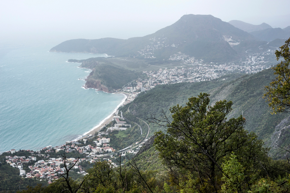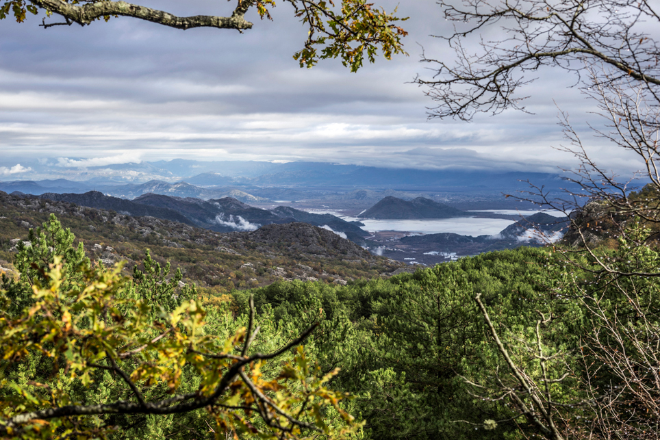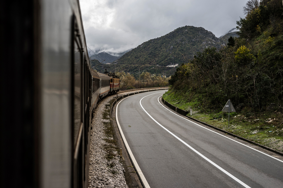 Nun beginnt einer der spektakulärsten Abschnitte der Bahnstrecke. Mit unzähligen Tunneln und Brücken durchbricht die Bahn das nordmontenegrinische Hochland und führt in den schroffen Hochkarst des Moraca-Canyons. Die schlechten Witterungsbedingungen machen die Strecke gleich noch spektakulärer. Wir halten mitten auf einer freistehenden Brücke. Vermutlich habe ich es mir nur eingebildet, aber ich habe das Gefühl, dass sich der Zug, von starken Böen geschüttelt, immer weiter zur Seite neigt und bin heilfroh, als er weiterfährt und wir die Brücke hinter uns lassen. Es wäre nicht das erste Unglück auf der Strecke. Nach dem 202 Meter hohen Mala-Rijeka-Viadukt, der höchsten Eisenbahnbrücke Europas, geht die Bahnstrecke in die subtropischen Gefilde der Zeta-Ebene über. Schaut man nun aus dem Fenster, sieht man Zypressen, Feigen und Strandkiefern. Wir passieren die Hauptstadt Podgorica und überqueren auf einem Damm den größten See der Balkanhalbinsel, den Skutarisee mit seinem gleichnamigen Nationalpark. Inzwischen hat es aufgehört zu regnen und sogar die Sonne spitzt gelegentlich zwischen den Wolken hindurch.