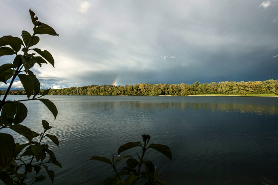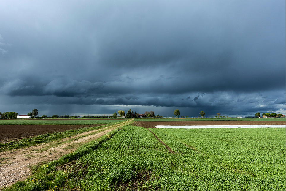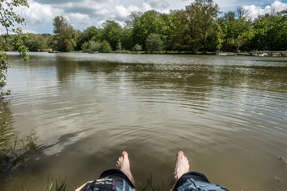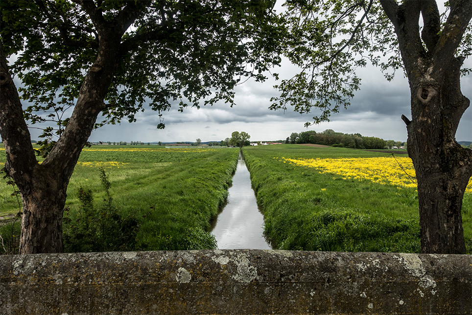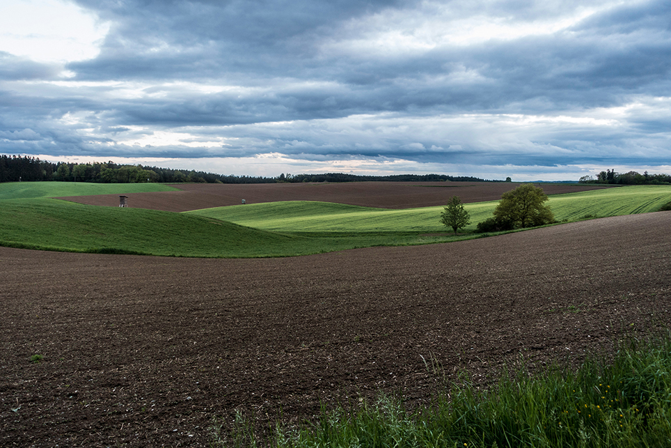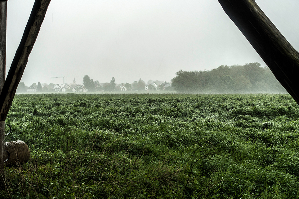 Ich fuhr trotzdem los, doch bereits nach zwei Kilometern bereute ich meine Entscheidung bitterlich, denn der Wind blies in einer unbarmherzigen Intensität aus nordwestlicher Richtung – und somit dummerweise genau aus der Richtung, in die ich die kommenden vier Tage zu fahren gedachte. Hinzu kamen in regelmäßigen Abständen heftige Regenschauer und Gewitter. Es waren Regenschauer, nach denen die Natur sehr lechzte, ich konnte ihnen hingegen nicht ganz so viel abgewinnen, zwangen sie mich doch oft dazu, unter einem Baum oder in einer alten Scheune Schutz zu suchen. Dennoch fuhr ich stoisch weiter. Erst ließ ich das Alpenvorland und den Chiemsee hinter mir, dann überquerte ich Inn, Isar und schließlich mit der Donau den berühmt-berüchtigten Weißwurstäquator. Nach einigem Auf und Ab erreichte ich das große, flache Becken des Nördlinger Ries in Schwaben, das durch einen riesigen Meteoriteneinschlag vor 14,6 Millionen Jahren gebildet wurde, der damals sämtliches Leben im Umkreis von 100 Kilometern pulverisierte. Mit der namensgebenden Stadt Nördlingen und dem etwas weiter nördlich gelegenen Dinkelsbühl gibt es in dieser Region zwei Kleinstädte, die sich ein wunderschönes, mittelalterliches Altstadtflair mit gepflasterten Gassen und vielen bunten Fachwerkhäusern erhalten konnten. Die Nördlinger Altstadt kann man sogar über die begehbare Stadtmauer komplett umrunden. Das ist einzigartig in Deutschland.