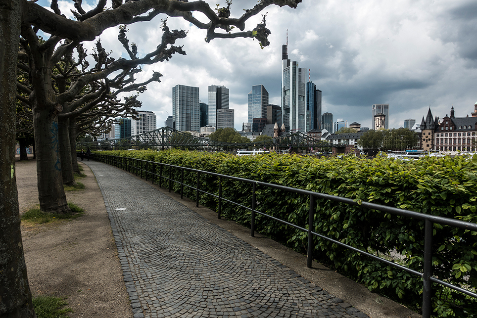 Kurz hinter Dinkelsbühl kehrte ich Bayern zumindest vorübergehend den Rücken und kam nach Baden-Württemberg. Es änderte sich zwar der Name nicht aber das Landschaftsbild. Nach wie vor zeigte sich Süddeutschland, dieser Hightech- und Industriestandort, von seiner ländlichen Seite und es dominierten kleine Dörfer und wenig befahrene Nebenstraßen – und es gab überraschend viele Störche, die sich auf den von den vielen Regenfällen feuchten Wiesen äußerst wohlzufühlen schienen. Auch ich konnte mich langsam aber sicher mit dem wechselhaften Wetter arrangieren und hatte meinen Rhythmus gefunden. Vor allem als ich bei Bad Mergentheim das Taubertal erreichte, kam ich sehr gut voran – zumindest bis ich es 15 Kilometer später kurz vor Tauberbischofsheim wieder verließ. Mit 200 Höhenmetern war die folgende Strecke an der B 27 entlang nach Hardheim wahrlich kein unbezwingbarer Anstieg, nach 12 Stunden im Sattel und zwanzig Kilo Gepäck am Rad, war ich dennoch froh, als ich endlich den Scheitelpunkt erreichte und es hinab ins idyllische Erftal ging. Kurz vor Miltenberg tauchten die ersten Weinreben an den südseitigen Hängen auf und ich erreichte das milde Tal des Mains. Immer in der Nähe des Flusses folgte ich dem Mainradweg durch Felder und Kleinstädte bis nach Seligenstadt. Hier verließ ich den Radweg und versuchte direkt nach Westen in Richtung Frankfurt zu kommen. Das ganze Unterfangen stellte sich in der Praxis schwieriger als gedacht heraus und ich verfuhr mich mehr als einmal, bis ich vor mir den Goetheturm an der Frankfurter Stadtgrenze erblickte. In den Hochhausschluchten von Frankfurt lief es dafür wie geschmiert, auch wenn ich mir zwischen Commerzbank Tower, Maintower und Eurotower wie eine Ameise vorkam. Ich überquerte die Nidda, verließ das Frankfurter Stadtgebiet an der A 5, fuhr noch ein Stück durch die nördlich gelegenen Felder und erreichte endlich, nach 550 Kilometern und vier Tagen, geschafft aber zufrieden mein Ziel in Eschborn.