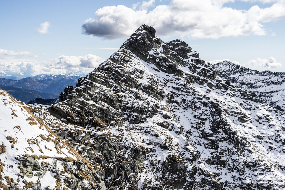 Aber wie das halt so ist. Anschließend wird das Gelände einfacher und so geht man weiter, quert einen ausgesetzten Südwesthang und eine steile, nordostseitige Flanke, in der der Schnee wieder bis an die Oberschenkel reicht und plötzlich steht man am Gipfel der 2.439 Meter hohen Poncione di Piotta. Hier hat man einen tollen Ausblick über den weiteren, spektakulär anmutenden Wegverlauf. Man hat zwar ein bisschen Bauchschmerzen, zurück will man jetzt aber auch nicht mehr – zumal der Abstieg eben auch kein Zuckerschlecken wäre. So nimmt man kurz den Rucksack ab, riskiert einen Blick ins Gipfelbuch und sieht, dass die Fußspuren anderthalb Wochen alt sind. Und dann geht man auch schon weiter. Man klettert über die steilen Stufen des Nordwestgrats, freut sich über die überraschend auftauchenden Drahtseile (es sollten keine weiteren mehr kommen) und Eisentritte und denkt sich, dass das alles schlimmer aussah, als es ist. Dann befindet man sich plötzlich wieder in einer unangenehm steilen Tiefschneequerung auf der Nordseite. Steigt zu tief ab, befindet sich im absturzgefährlichen Steilgelände, muss, wie bereits die Vorgänger, wieder zurückklettern und erreicht den inzwischen messerscharfen und extrem luftigen Grat, der gerade nach Norden zieht. Man denkt sich, dass nun aber langsam mal der Abstieg zur Capanna Cornavòsa kommen müsste, aber da kommt kein Abstieg. Es geht weiter am Grat entlang. An kurzen, senkrechten Steilstufen gibt es sogar Abseilhaken und man denkt sich, dass der Weg wohl doch anspruchsvoller wird, als man vermutet hat. Der Rucksack beginnt schwer auf einem zu lasten und man fühlt sich von ihm unangenehm gen Abgrund gezogen. Deshalb zieht man den Rucksack aus, klettert befreit ab und zieht dann den Rucksack hinterher. Dabei fällt eine Trinkflasche in eine enge Spalte, die man aber zum Glück mit dem Wanderstock wieder hervorangeln kann. Inzwischen werden die umliegenden Berge und Felswände in ein warmes Abendlicht getaucht und man weiß nicht so ganz, ob man sich über dieses beeindruckende Naturschauspiel freuen oder es doch lieber fürchten soll, verkündet es einem doch unweigerlich die unerfreuliche Tatsache, dass es in die Nacht gehen wird, mein Freund. Im letzten Dämmerlicht quert man die nächste ausgesetzte Steilflanke. Die wievielte es ist? Man weiß es nicht mehr. Dann erreicht man eine Scharte, denkt, dass hier endlich der Abstieg zur Hütte beginnen muss und doch sieht man auf allen Seiten nur gähnende, schwarze Leere. Inzwischen ist es stockdunkel und man will nicht mehr weiter. Doch auf dieser schmalen, ungeschützten Scharte kann man unmöglich das Zelt aufbauen. Also geht man weiter. Steigt vorsichtig wieder ein paar Meter ab - nur nicht ausrutschen, es wäre vermutlich der letzte Fehler. Kurz wird das Gelände flacher, man genießt die Momente des unbeschwerten Stapfens durch den in der Stirnlampe glitzernden Schnee. Doch die Freude wärt nur kurz, denn es geht wieder bergan. Das kann doch nicht wahr sein, denkt man sich, doch die Markierungen weißen unerbittlich nach oben. Auch die Steilheit nimmt wieder zu. Anfangs nur auf einer Seite, doch schon bald befindet man sich wieder im schrofigen Absturzgelände. Hier, auf der Südwestseite, ist der Schnee teilweise getaut, dafür beginnt nun das Schmelzwasser zu gefrieren und man verflucht sich zum wiederholten Male dafür, keine Steigeisen mitgenommen zu haben. Immer wieder verliert man die Markierungen und findet sich in dem unangenehmen Steilgelände wieder. Man sucht mit der Stirnlampe umher und erblickt dann zehn oder zwanzig Meter über sich eine reflektierende Markierung. Schließlich biegt man um eine Kante und das Licht der Stirnlampe verliert sich wieder in bodenloser Dunkelheit. Das ist zu viel. Seit 7 Uhr ist man ohne größere Pause unterwegs, jetzt ist es 23 Uhr. Man ist fertig – psychisch und physisch und man beschließt hier und jetzt zu biwakieren. Und man hat Glück. Genau an dieser Stelle gibt es ein paar große Felsbrocken, zwischen denen man sich einkeilen kann, ohne gleich Angst haben zu müssen, bei der ersten falschen Bewegung im Schlaf die Reise ins Tal anzutreten. Man breitet die Isomatte aus, zieht sich eine warme Jacke über, zwängt sich aus den pitschnassen Schuhen, schlüpft in den dicken Schlafsack und versucht etwas Ruhe zu finden. Doch bereits innerhalb der ersten Stunde wird man durch drei Krämpfe im Oberschenkel geweckt, was in dieser Position extrem unangenehm ist. Also steht man noch einmal auf, versucht sich auf der kleinen Isomatte zu dehnen und hat glücklicherweise eine Magnesium-Tablette dabei, die man jetzt nehmen kann. Dann versucht man wieder Schlaf zu finden und ist doch überrascht wie gut das geht. Alle zwei Stunden wacht man zwar auf, weil einem kalt wird, aber sobald man die Gliedmaßen etwas warm gerubbelt hat, sinkt man auch schon wieder ins Land der Träume. So schnell kann es also gehen, dass man einfach mal schauen will, wie es so geht und dann geht man und geht man und geht man und verpasst den Punkt umzudrehen.