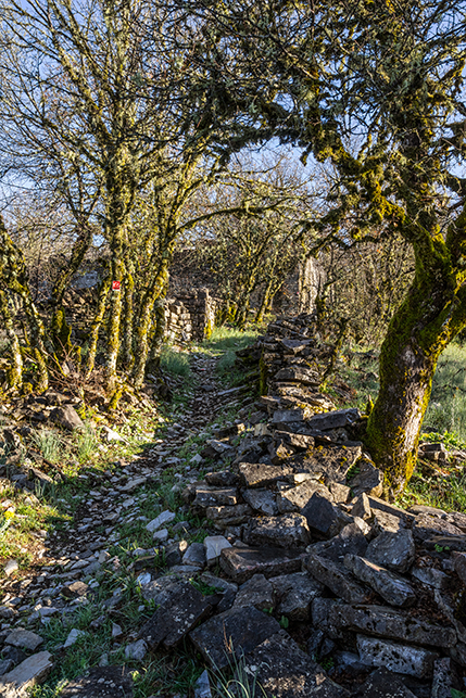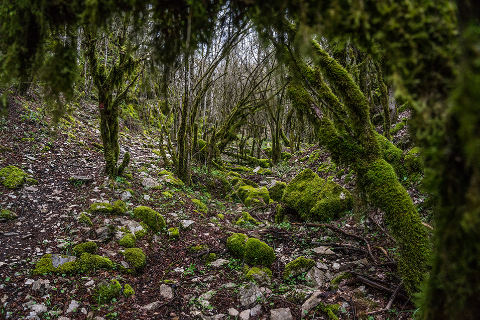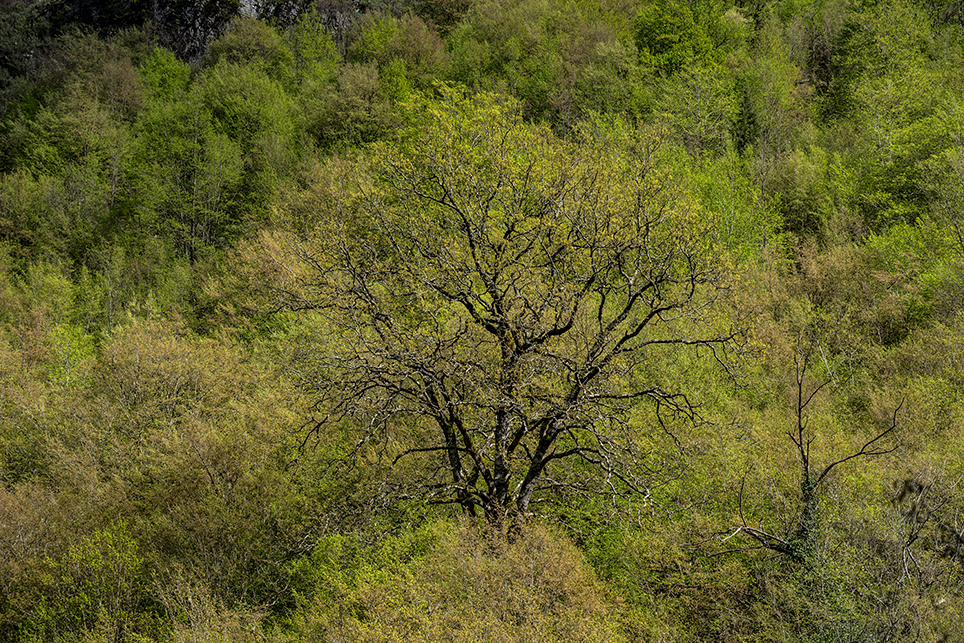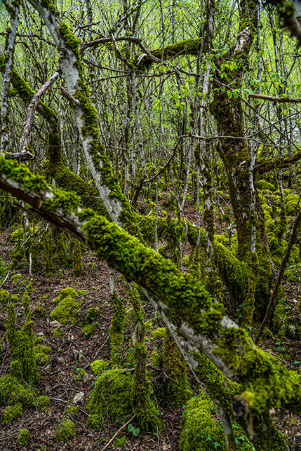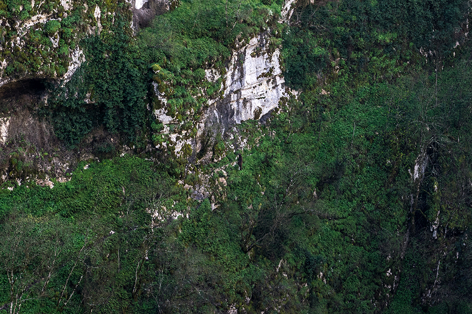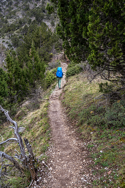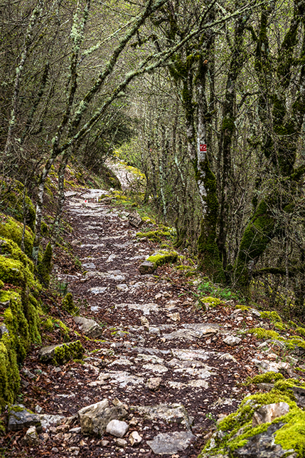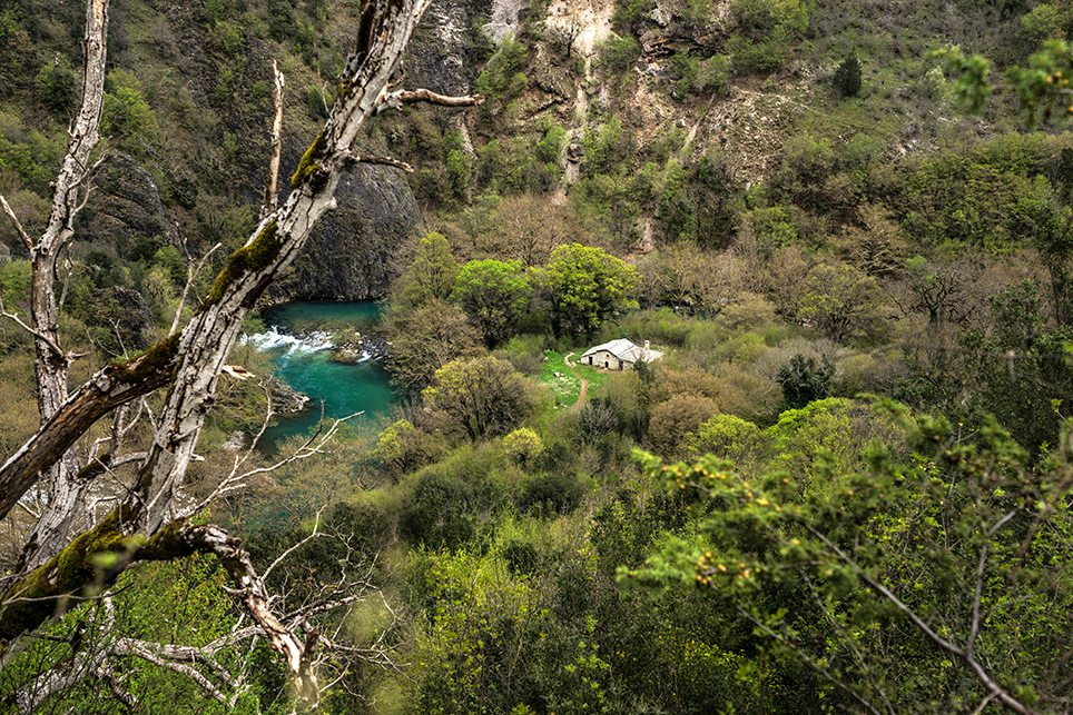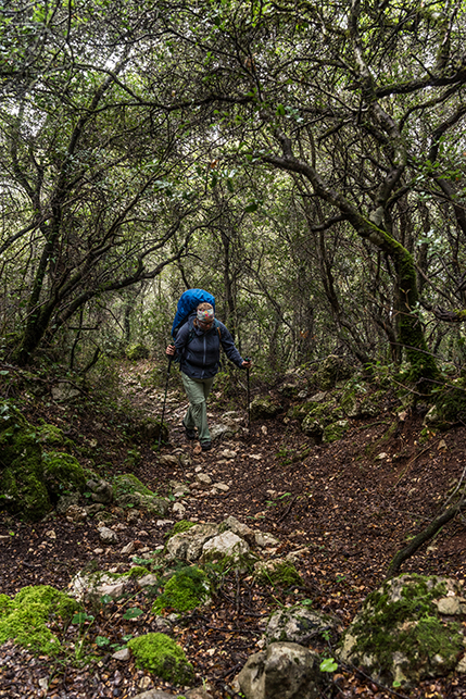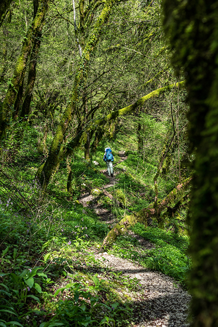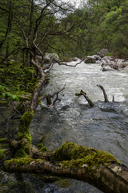 Ein gut ausgebauter Pfad führt von Monodendri etwa 500 Höhenmeter hinab in den Grund der Schlucht. Bald verengt sich das Tal, die Felswände steigen steil empor, und kaum ein Sonnenstrahl dringt bis zum Boden. Saftiggrüner Bärlauch bedeckt den schattigen Boden, dicke Moospolster umhüllen die feuchten Felsen und Baumstämme. Nur ein schmaler Pfad windet sich unweit des laut rauschenden Vikos durch die enge Schlucht; Forstwege oder abseits liegende Baumstümpfe gibt es hier nicht – ein Stück Urwald hat sich hier unten noch erhalten. Etwa in der Mitte der zwölf Kilometer langen Schlucht erreichen wir die Klima-Quelle. Dahinter wird die Schlucht heller, sonniger – und rasch grüner. Die Buchen tragen ihre ersten Blätter, hellgrün und voller Leben, während Vögel fröhlich ihre Lieder vom beginnenden Frühling singen. Die Felswände reichen nun nicht mehr so weit hinab und in der Ferne hören wir das Glockenläuten einer Ziegenherde, die auf die sonnigen Hänge getrieben wird.