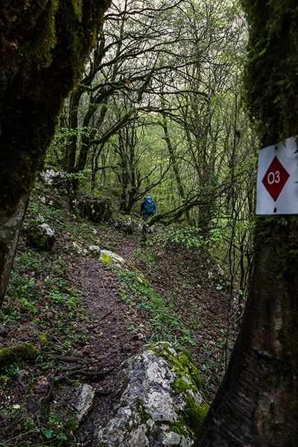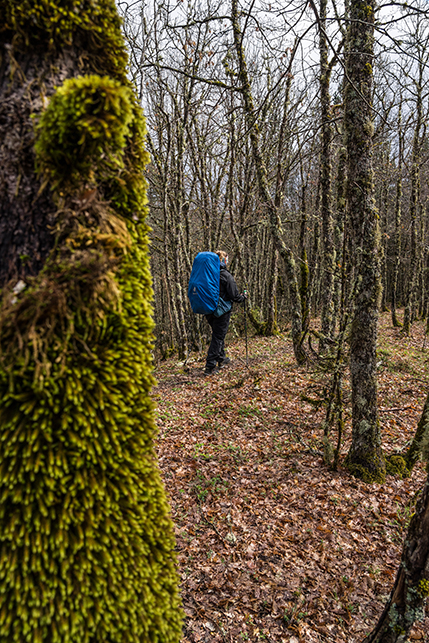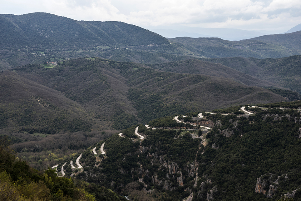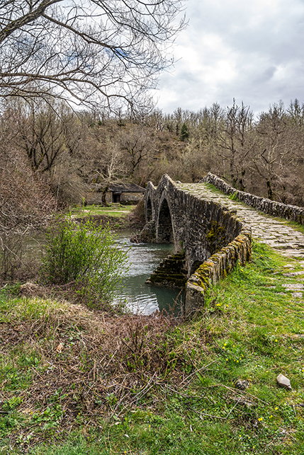 Über einen Umweg um Tsepelovo stoßen wir wieder auf den Hauptweg. Es geht weiter nach Kipi, wo wir mehrmals auf große Tatzenabdrücke treffen – Bären scheinen im Pindos also alles andere als selten zu sein. Die Wege führen an türkisblauen Flüssen entlang und über kunstvolle Steinbogenbrücken aus dem 19. Jahrhundert, finanziert von reichen Kaufleuten der osmanischen Zeit. Über Vitsa und Monodendri erreichen wir schließlich den Oxia-Aussichtspunkt, der noch einmal spektakuläre Blicke in die Vikos-Schlucht eröffnet. Doch nun wollen wir sie nicht mehr nur von oben betrachten – endlich soll es hindurchgehen.